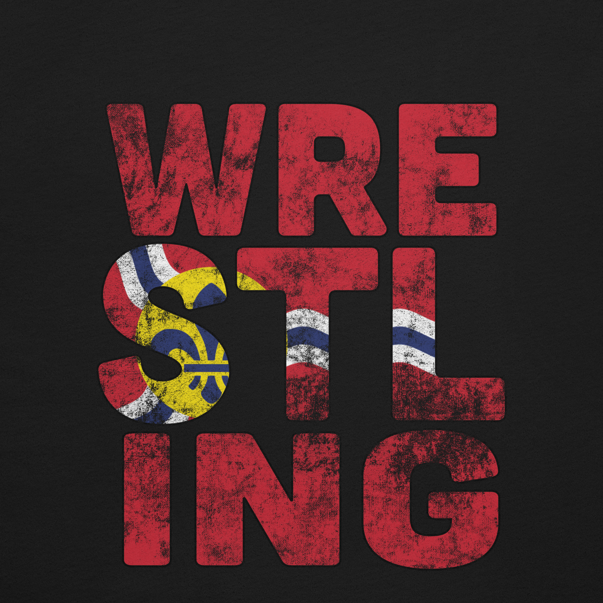 You can't spell wrestling without STL! Show off your pride for St. Louis' rich wrestling history. Whether you live for St. Louis indy wrestling, or you live in the St. Louis metro are and just love to watch pro wrestling on TV, this shirt is for you!